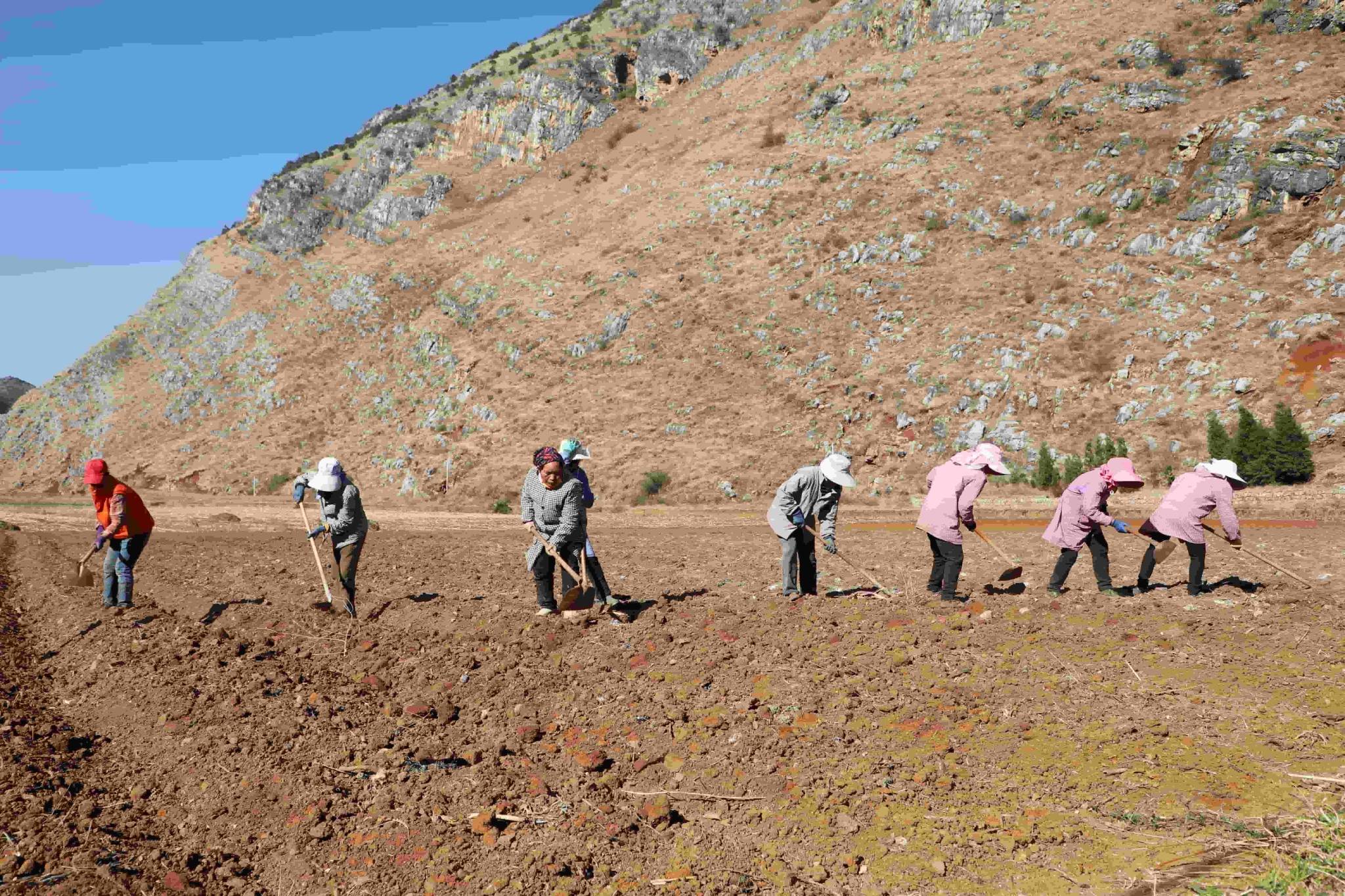富源县后所镇卡泥坝子的冬闲田间一派忙碌