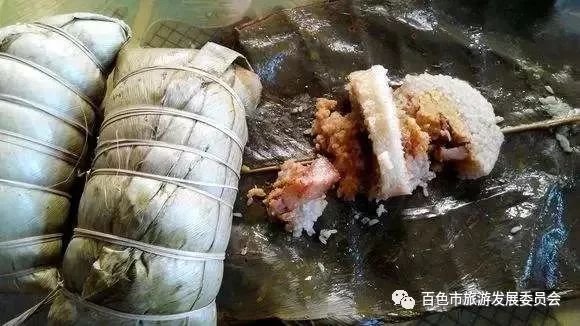 “逢咩”(母粽)是粽粑里最大的一个,这种“巨无霸”大粽形状如同鼓鼓囊囊的枕头,用绿豆或竹豆猪肉做馅。春节快到了,靖西人家家户户都在忙着刷粽叶、泡糯米、割猪肉、调佐料,准备包“逢”~