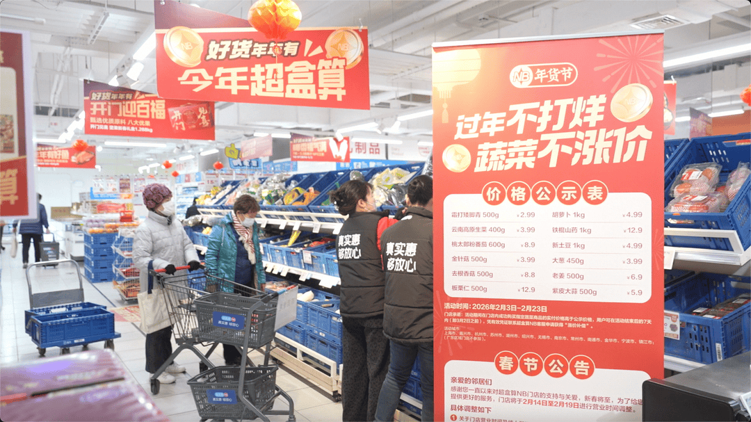 2026年春运于2月2日正式启动,为期40天,预计全社会人员流动量达95亿人次,再创历史新高。为保障节日期间周边邻里的买菜需求,2月3日,平价社区超市超盒算NB宣布两项举措:全国400余家门店春节不打烊,并对12种家常蔬菜实行价格公示、节日期间不涨价。