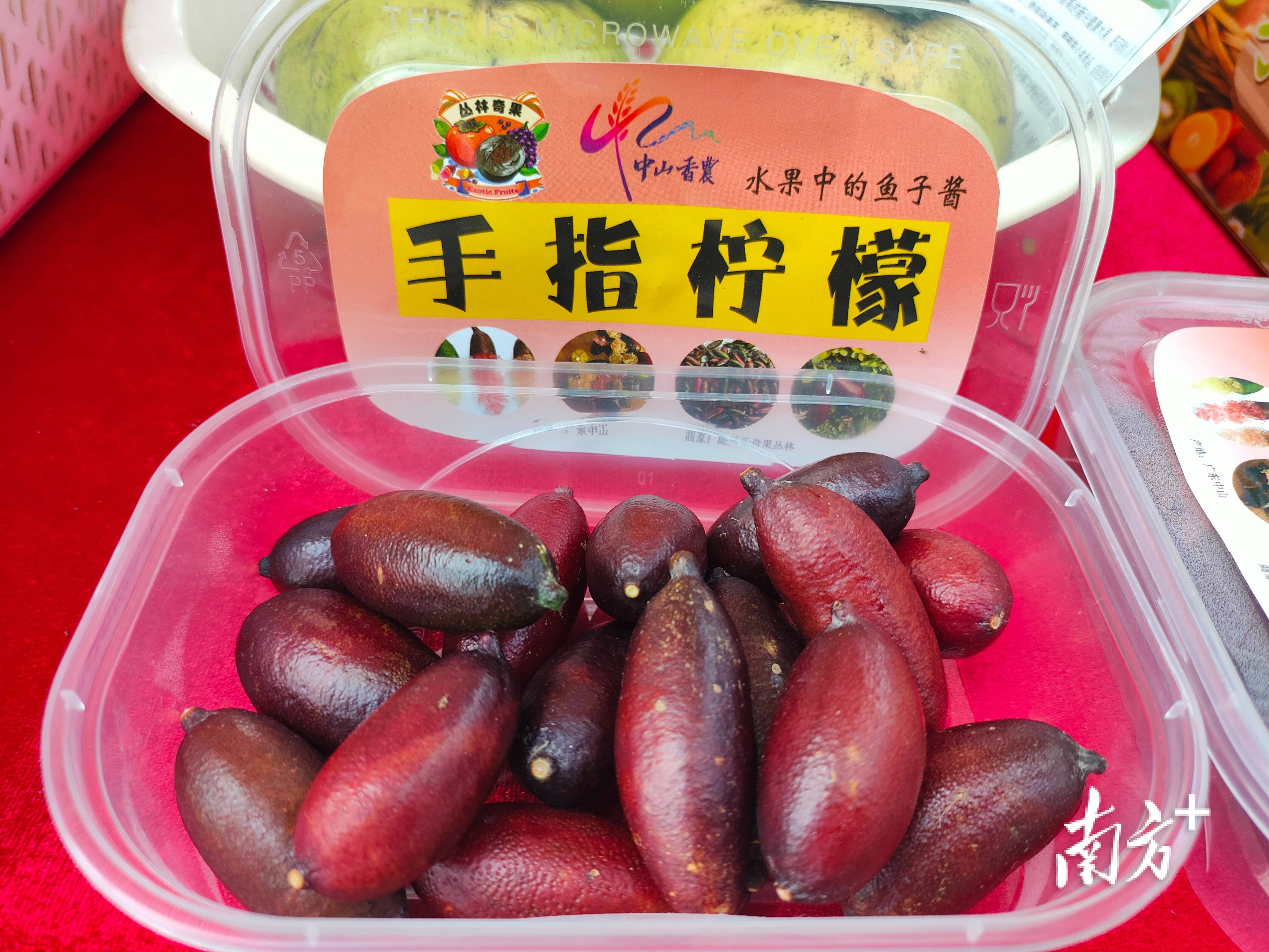 手指柠檬则被称为“水果鱼子酱”,是原产澳洲、现于中山民众街道精致化栽培的特色高端水果。其外形细长如手指,果皮色彩丰富,包含绿、红、粉、紫等颜色,内里包裹着晶莹剔透的细小果粒,酷似顶级鱼子酱,视觉上极具冲击力。这些“珍珠”般的果粒入浆,迸发出强烈而清新的柠檬酸香与柑橘芬芳,口感脆爽独特。