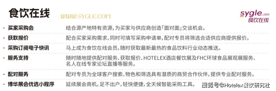 HOTELEX & FINEFOOD系列展是国内最早开展“展网融合”的展览平台之一,通过十多年的建设,已经构建了较为完善的B2P2C的数字化营销平台,能够为采购商和供应商提供不受时空限制、线上线下完美结合的全天候服务。