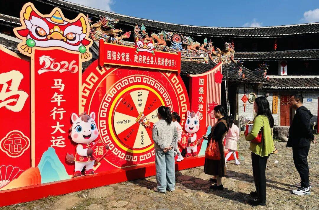 马年新春,国强乡花溪梦田景区迎来如潮游客。连日来,田园观光、土楼探访、亲水游乐、美食体验等项目人气旺盛,现场欢声笑语不断,年味十足。